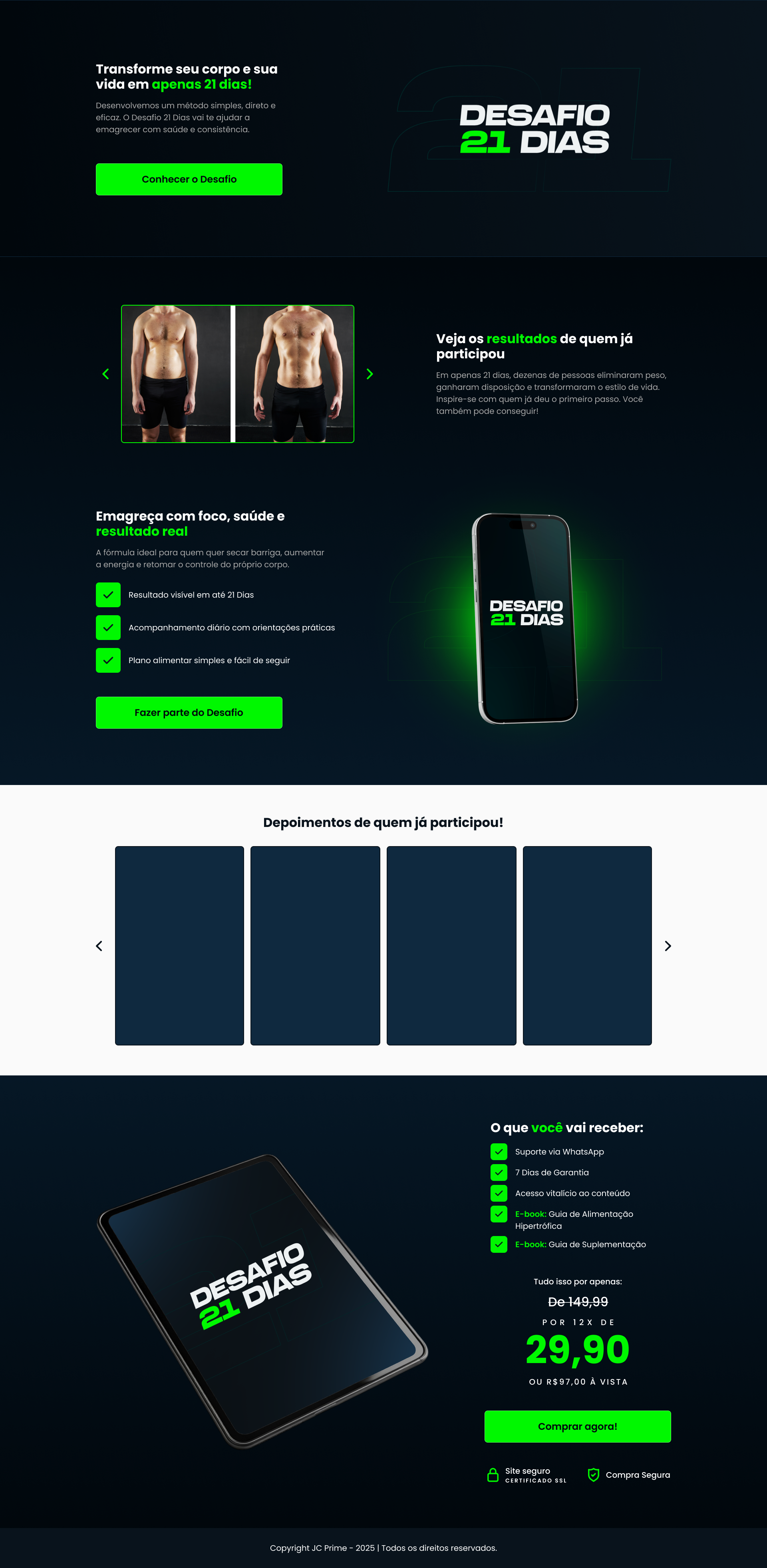 Página de Vendas: Desafio 21 Dias